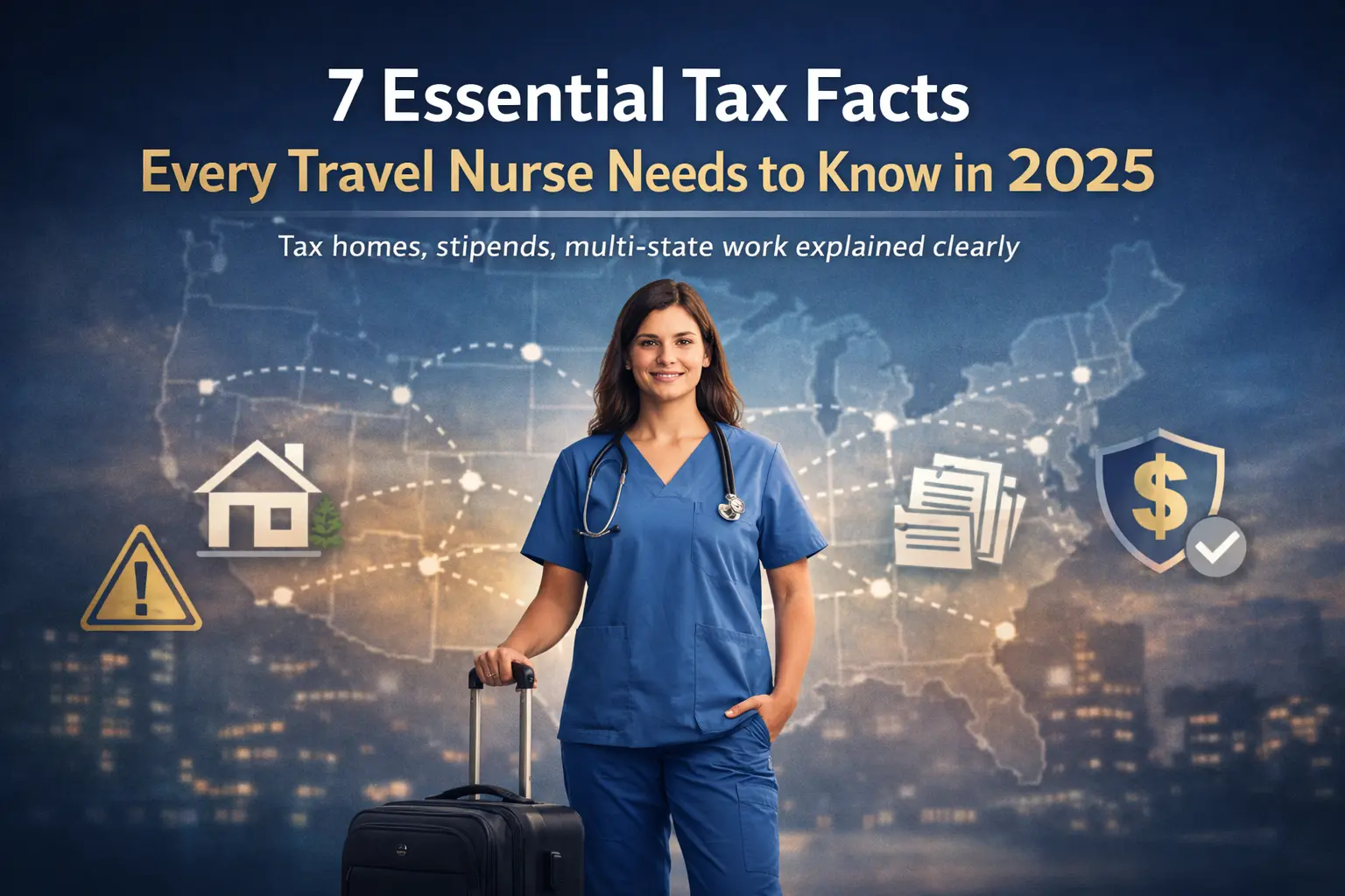 Search Search Learn More Maximizing Tax‑Free Stipends for Travel Nurses in 2025 7 Essential Tax Facts Every Travel Nurse Needs to Know in 2025 Audit Risks and Compliance for Travel Nurses Navigating Travel Nurse Deductions and Credits Managing Multistate Tax Filings Understanding Travel Nurse Tax Basics